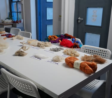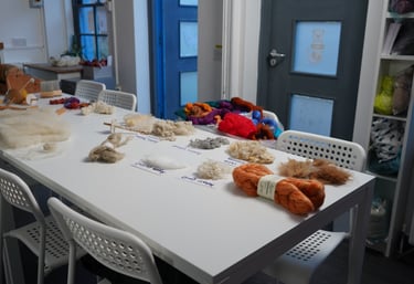 Welcome to our textile teaching studio nestled in the heart of Blue House Yard, Wood Green. We're all about the art of crafting, offering a variety of classes and courses that span the wonderful world of knitting, crochet, spinning, and dyeing.