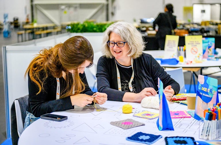 At Four Otter Craft Studio, our beginner classes are designed to take you from absolute zero to feeling comfortable with your yarn, tools, and first stitches.